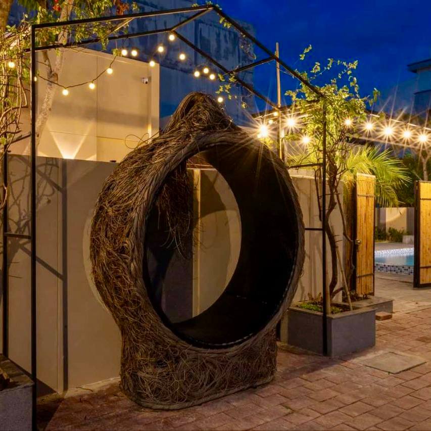 – Khuôn viên rộng rãi, riêng tư. Có hồ bơi nước mặn rộng 40m2 và sân tổ chức BBQ tại villa hoặc sát biển.